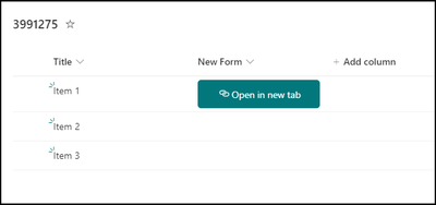 { "$schema": "https://developer.microsoft.com/json-schemas/sp/v2/column-formatting.schema.json", "elmType": "button", "style": { "border-radius": "5px", "margin": "5px 0px", "padding": "0px", "border": "none", "display": "=if(@rowIndex == 0, 'block' , 'none')" }, "attributes": { "class": "ms-bgColor-themePrimary" }, "children": [ { "elmType": "a", "style": { "text-decoration": "none", "padding": "12px 0px", "width": "100%" }, "attributes": { "href": "= @currentWeb + '/Lists/MyList3991275/NewForm.aspx?ID=' + [$ID]", "target": "_blank", "class": "ms-fontColor-white ms-fontSize-m" }, "children": [ { "elmType": "span", "style": { "display": "inline-block", "padding": "0 4px" }, "attributes": { "iconName": "Link" } }, { "elmType": "span", "txtContent": "Open in new tab" } ] } ] }Output: