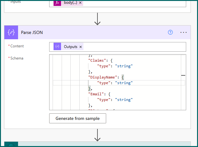 body('Get_items')?['value'][rand(0,length(body('Get_items')?['value']))]At this point save the flow and run a test, and copy the contents of the output of the Compose above into a Parse JSON action:
