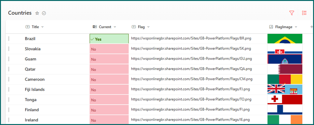 I've added a view of the list to show just the item now marked as current. I formatted that with JSON view formatting to add a dynamic link to the Wikipedia page abut the country and another one to open the map of the country in Bing Maps but you won't need those. You could just the Title column displayed in a new view of the list which is called Current Random Country..