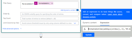 Revieweddate le '<your formula>' or Revieweddate eq null