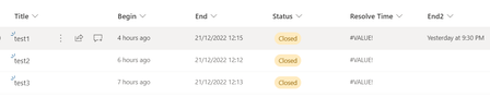 hi guys ... i have a sharepoint online list with a column named Begin that marks the creation time of a ticket and i created another calculated column named End that timestamps the ticket when the...