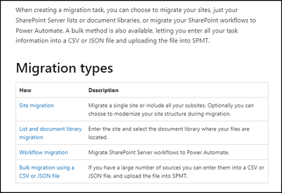 Here are the different Migration types supported using the SharePoint Migration Tool (SPMT):