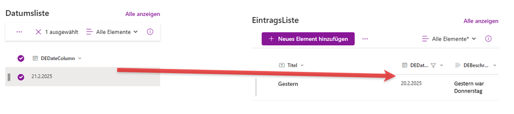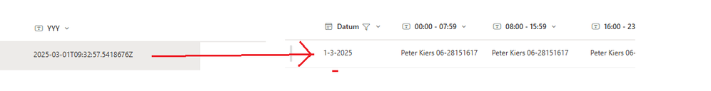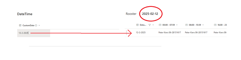 I have 2 SharePoint Lists connected with Dynamic Filtering on the Date/Time column called "Datum". Only when I choose in the list on the left a date the list on the right gives me a date from yesterday !!! What do I do wrong ? And why the date given backwards ? It should be 12-02-2025 instead of 2025-02-12.