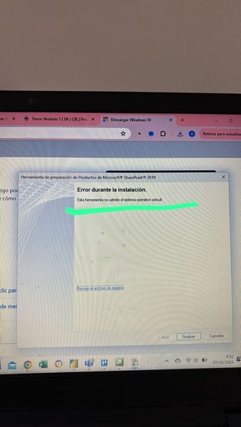 Hola Agustina, Por lo que veo estas utilizando un sistema operativo para usuarios finales como Windows 11, segun la documentacion de Microsoft para poder lograr la instalacion debes de utilizar de Windows Server 2016 hacia adelante. Aca te dejo el enlace de los requerimientos a nivel de software: https://learn.microsoft.com/es-es/sharepoint/install/hardware-and-software-requirements-2019#software-requirements-for-sharepoint-server-2019 Slds.