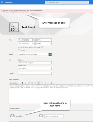 Error saving event when participant has an apostrophe in login name