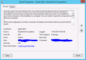 Event 8321, SharePoint Foundation Issue on SharePoint 2016
