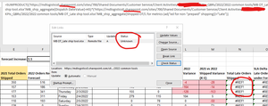 Greetings, Not sure if I should post here or in the Excel Community. I have two Excel workbooks in the same folder on a SharePoint resource. One is the data source. It is a large workbook with lots...
