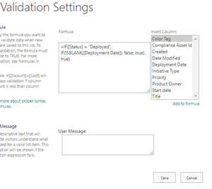 Hi all, I'm trying to make a field mandatory based on the value of another field using Validation Settings. However, the [Status] field that I have in my list for some reason does not appear in th...
