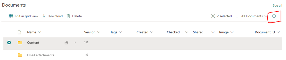I created a document library to store our team's sprint documents. Once uploaded, clicking on the 3 dots icon beside the file name reveals a menu with a bunch of options, including "Details".
