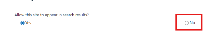 Then set “Allow this site to appear in search results?” to No.