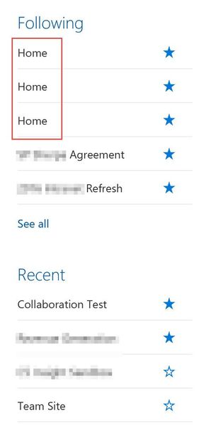 I've got a weird one and not sure if others are seeing the same thing in Online. So I've got some modern team and communication sites that I'm following, and when I go to SharePoint Home, their titl...