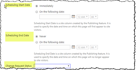 I appreciate your response. Allow management of contents types was enabled. The Change Request Status is separate from the item scheduling. I was able to remove the item scheduling by counter intuitively "enabling content approval" then changing versioning to major\minor, they turning on the library setting for item scheduling then turning it off. Then turning off content approval and switching back to just major versioning. Whew and quirky.. I may have gotten to the solution on my own, but I found help from ...