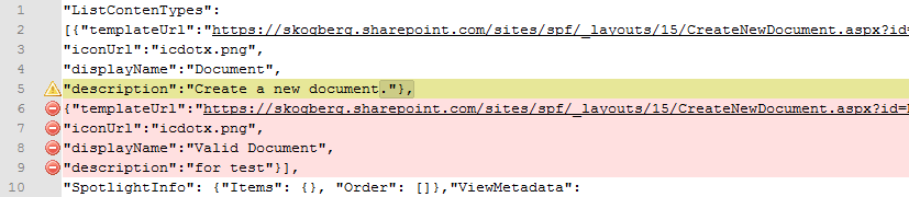 On an unchanged Document Library, only the default “Document” content type is shown in the source code, but not visible on the “New” button. You see “Word-document” but nut the actual content type “Document” in the library. But wait! What’s happening here? This can’t be right? Can it?