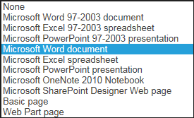 - If you only have the default document content type then the new button will default to the 4 basic documents that can be created in Office Online server. If you add custom content types then the assumption is that each custom content type has a custom template associated with it. So then the New button will default to showing you the different document templates associated with each content type. This is all by design,
