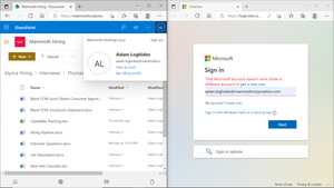 Those are two different logins. The one on the left is Microsoft 365, and the one on the right is asking for a "Microsoft" and not a 365 (work or school) account.