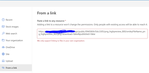 Hi, How to access image from outside organization using option "From a link" in image webpart? Getting error like below as per screenshot. Regards, Pratik