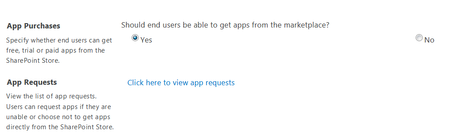 so end users can request apps from the sharepoint store, but the app need to be confirmed by the admin first? to be honest i am not sure why by defualt we have the "App purchases" set to "Yes"?