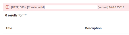 [HTTP]:500 - [CorrelationId]:~ [Version]:16.0.0.25012