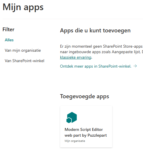 But when I edit a SharePoint page and try to select the Modern Script Editor Web part it isn't showed in the webpart screen !!! What do i do wrong? Even when i select Create a app is see the app installed: