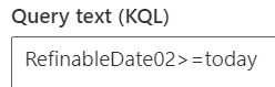 I have one property of datetime (Deadline Date) and wanted use that in filtering data in KQL. Result set which I want from KQL is that Articles (Site Pages) should get whose Deadline date (mapped to RefinableDate02) is greater than or equal to current date and time.