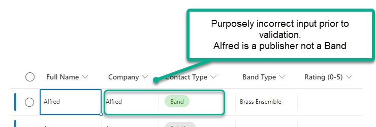 - If the [Contact Type] field is "Band" and the [Band Type] field is left empty, throw the error.