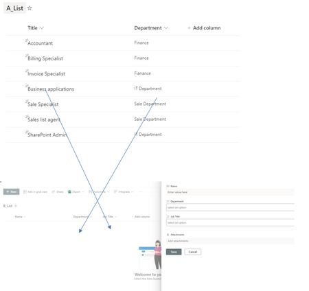 Hello, Could you do me a favor? In the B list, Department and Job Title are lookup. If Department is Finance, can the Job Title only display the jobs that are only related to Finance? S...
