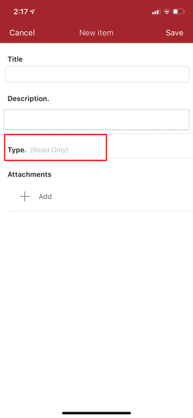I have a column named Type of type managed metadata, and on our apple mobile app the filed will be shown as read-only, and since this field is mandatory so users are not able to create new list items...