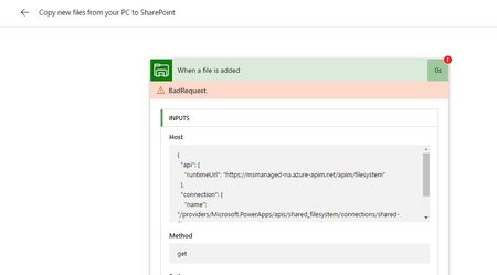 Microsoft Flow - Copy files from PC to SharePoint - Error