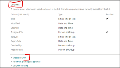 - From list settings page, scroll down to Columns section and select Create column: