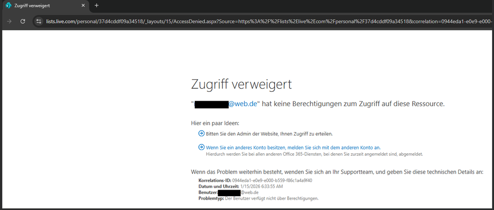 But I tried and end up like this:Which says from my point of view: "Access denied. You don't have access to your own files"