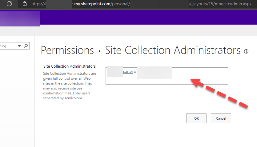 Microsoft OneDrive - Site Collection Administrators "empty" with user name not listed