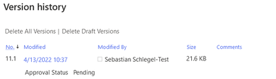 Version history of the same document after manual submit for approval: