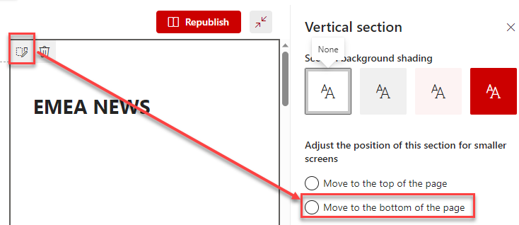 Hi, We have created a landing page for our intranet and its set to 1 column and vertical section. The issue is that we you view the page the elements in the vertical section are shown first and t...