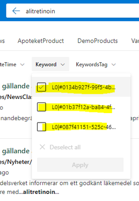I have added a filter tag in SharePoint modern search option. This filter option is provided for termstore column called TaxKeyword, this is sharepoint provided column. But in search result it showi...