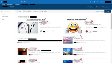 Hello, We are developing a Modern site page in SharePoint which is using a News web part. The News web part is pulling employee news from an "Employee News" sub-site. It displays the "Employee Ne...