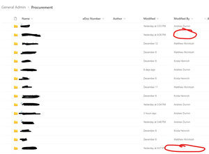 Hello Everyone I have a SharePoint document library with folders. For some folders, the value for 'Modified by' column is missing(as highlighted in the screenshot below). Is there any way to fix thi...