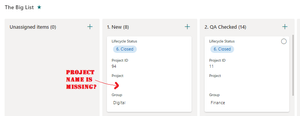 Hello I wonder if anyone has a similar issue or fix. Problem - In my MS Lists, within Board view, the attribute data (i.e. name of the project) isn't showing. This only occurs where I select "...
