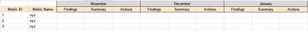 Hi all, I'm looking to create a view in SharePoint Lists which displays metric results as a sort of time series. Each month users with provide the 'Findings', 'Summary', and 'Actions' for each ...