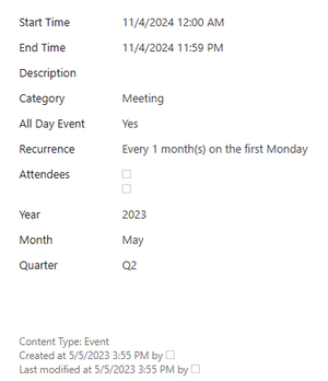 hi cgotling , The problem in your case is that the recurring event is, in fact, just one list item, and what you see in the calendar is simply a representation of that single item. That is why the Year and Month values are calculated based on the initial item.