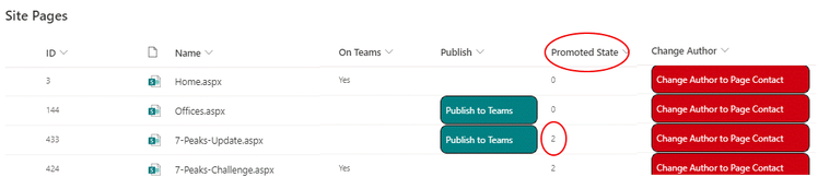 Connect-PnPOnline -Url "xxxx" ` -ClientId "xxxxx" ` -Tenant "xxxxx" ` -CertificatePath "xxxxx" $page = Get-PnPListItem -List "SitePages" -Query "<View><Query><Where><Eq><FieldRef Name='FileLeafRef' /><Value Type='Text'>xxxxx.aspx</Value></Eq></Where></Query></View>" Set-PnPListItem -List "SitePages" -Identity $page.Id -Values @{"PromotedState"=2} $utcDate = (Get-Date).ToUniversalTime().ToString("yyyy-MM-ddTHH:mm:ssZ") Set-PnPListItem -List "SitePages" -Identity $page.Id -Values @{"FirstPublishedDate" = $utcDate} - Priscilla1207