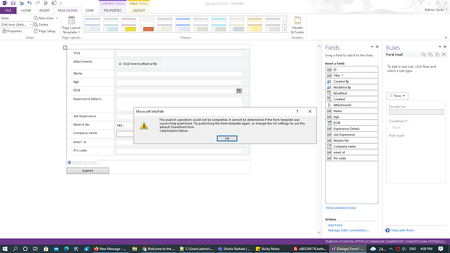 not able to publish sharepoint list from infopath