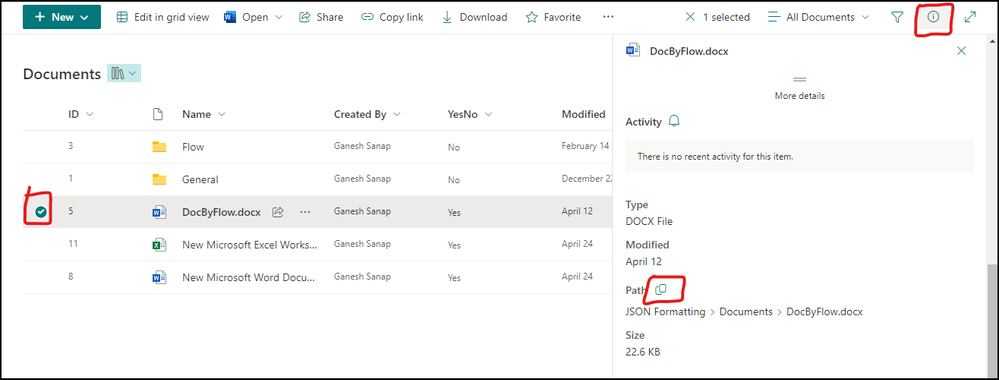 You can get the URL for your document from details pane like this: