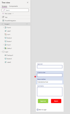 I am trying to create almost a login screen where the manager enters their name once. The text they input into this screen then transfers into the "Approver" section of the Edit Form on the next screen (Screenshots below). I have not found a way to successfully do this. I was not sure if I should use a text input that saves as a variable then setting the edit form on the details page equal to that variable? Any help is appreciated, thank you!