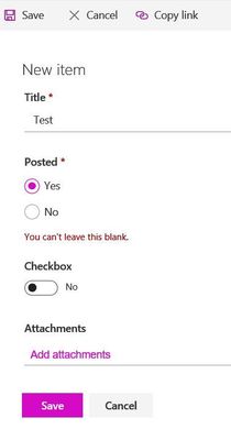 BUT...I discovered the same attachment problem with Yes/No in New and Classic. And, with a Yes/No there is no mandatory to remove. Same behavior in that one hits Save which greys out and then nothing happens (see first post screenshot).