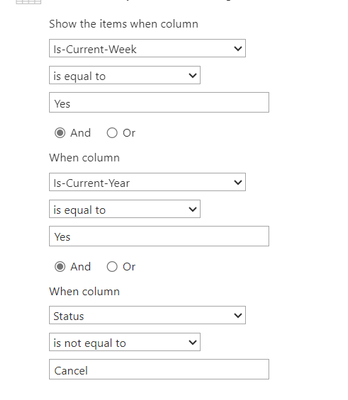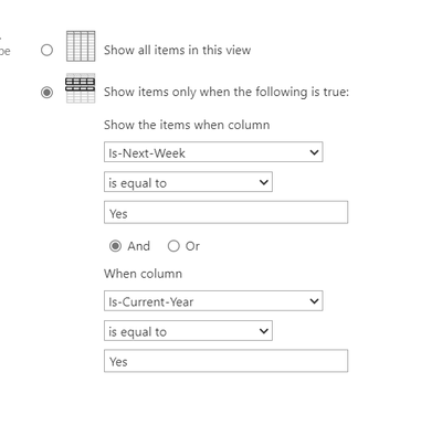 I have a sharepoint list of "changes" made at my workplace. Currently, I made a view which displays the changes for the current week, as well as a view displaying changes for the next week. This is based on the week number of the changes, not within a set 7 day time frame as this would maybe miss out changes of the coming monday if you were to look at the view on Friday.