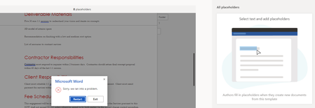Hello, I am trying to create a modern template (Syntex content assembly), and as soon as I load my template document, I have an error as shown in attached picture, (sorry we ran into a problem, w...