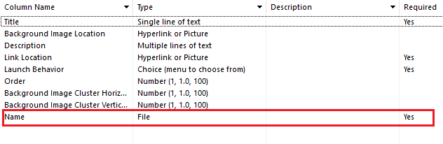 When you create a new promoted links list then there is a Name field that is created which is also a required field. If you try and add links using the quick edit option then you get an error saying that one the required fields is not completed. If you try and add the Name field in the view settings its not visible.