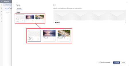 Remove or edit the built-in templates for new pages or news post on a communications site