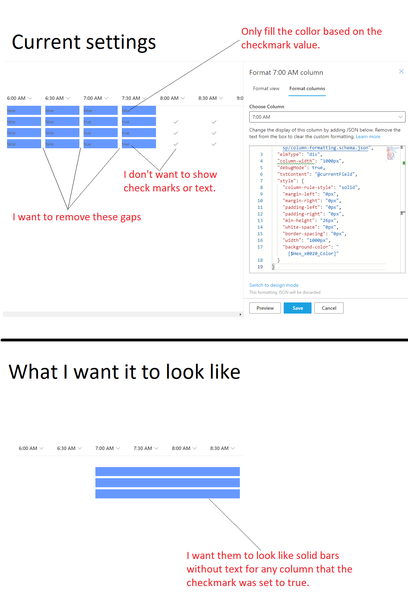 Removing spaces between columns in a SharePoint list (Creating custom hourly gantt chart)
