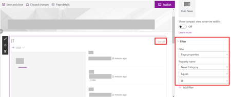 I have added a News modern web part to our sharepoint online classic team site. and inside the News web part, i define to filter the News based on a custom property named "News Category" = IT, as fol...